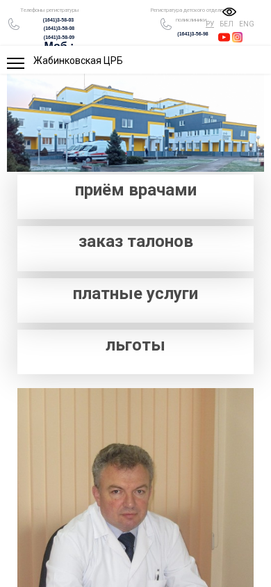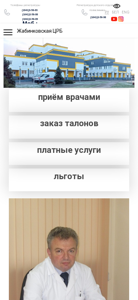 | AI-анализ | --- This online resource, titled "Главная" and belonging to the domain zhabinka-crb.by, primarily focuses on healthcare services and contacts, with keywords related to vaccination, healthcare services, contacts, and healthcare institutions. The description includes mentions of several telephone numbers, some of which are for the registry and a children's department of a polyclinic. The website offers options to select languages, including Belarusian, Azerbaijani, and others. |