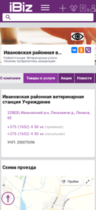 | Название / Заголовок | Ивановская районная ветеринарная станция Учреждение - Райветстанция. Ветеринарные услуги. Лечение, профилактика, вакцинация. . 225820, , Лясковичи д., Ленина, 69 |
