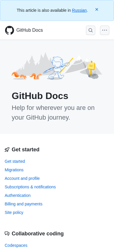 | SEO-описание | Get started, troubleshoot, and make the most of GitHub. Documentation for new users, developers, administrators, and all of GitHub's products. |