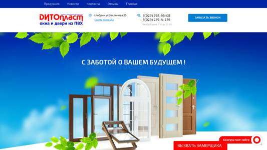 | AI-анализ | This online resource, titled "Окна и двери из ПВХ - Дитопласт г. Кобрин," is a website dedicated to the sale of PVC windows and doors, as well as related fittings and accessories. The site's description mentions offerings of PVC windows, doors, skirting boards, and plastic sills. Keywords associated with the site include 'podoconniki otlivy,' 'plastichnye otkosy,' 'laminatsiya profilya,' and 'protivomoskitnye setki,' which translate to 'skirting boards and architraves,' 'plastic sills,' 'lamination of profiles,' and 'mosquito netting,' respectively. The site's top words suggest a focus on PVC products, windows and doors, various profile types, and anti-mosquito net |