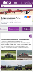 | AI-анализ | --- The portal kobrinhimservice.ibiz.by is a Belarusian state enterprise offering agricultural services including agrochemical treatments, mechanized work, and automotive transport services. They also rent agricultural equipment with crews. The company is located at Пролетарская 183, 225305, Кобрин. Their offerings include the sale and application of fertilizers from major domestic suppliers, transport services, organic application, agrochemical support (crop feeding, chemical treatments), cargo transport, lime application for acidic soils, and fodder harvesting. Their transport fleet includes loaders, tractors, dump trucks, sprayers, and agricultural vehicle technology among others. The company also engages in the wholesale sale of solid and liquid mineral fertilizers. Future plans include upgrading infrastructure and expanding the range of services. The company welcomes |