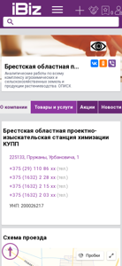 | AI-анализ | This website is for Brest Oblast Project and Research Station of Chemization KUPP, providing analytical services for the entire complex of agrochemical and agricultural lands and produce in crop farming. The website includes information about the company, its products and services, contact details, and a scheme for reaching the location. The top keywords associated with the website are '375', 'услуги' (services), 'тел' (telephone), '1632', 'закупки' (purchases), 'объявления' (announcements), '258', and 'добавить' (add). The company's Unified State Register number is 200026217, and it is located in Pruzhany, Belarus, at the address Urbanycha 1. The contact numbers provided are +375 ( |