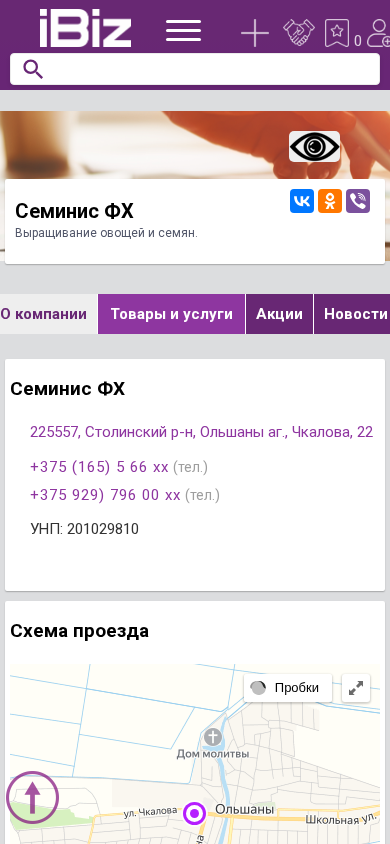Название / Заголовок | Семинис ФХ - Выращивание овощей и семян.. 225557, , Ольшаны аг., Чкалова, 22 |