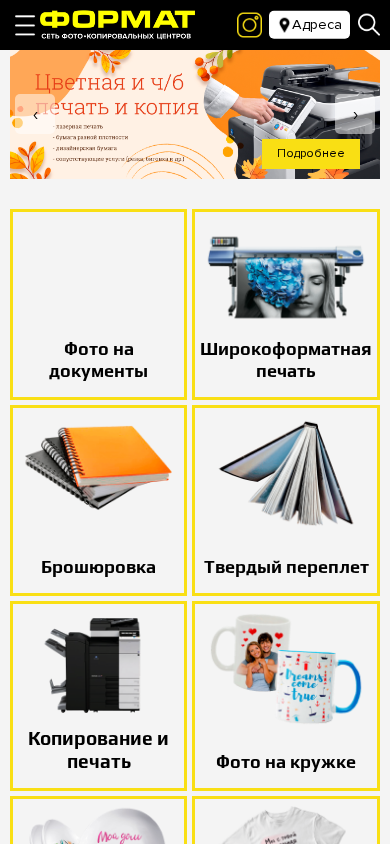 | SEO-описание | Формат - печатный центр в Минске: печать фотографий, сканирование документов, распечатка документов, фотосувениры. 10 печатных центров возле метро. Продукция и услуги максимального качества. Звоните сейчас ☎ +375 29 342-43-43 |