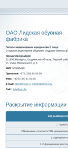 | Название / Заголовок | Лидская обувная фабрика ОАО |