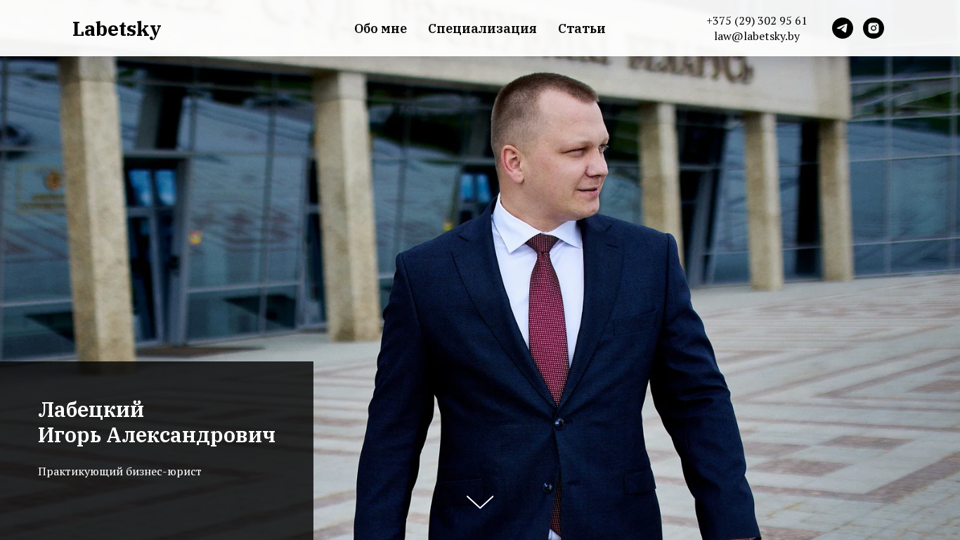 | SEO-описание | Персональный сайт бизнес-юриста Игоря Лабецкого с информацией о себе, квалификации, специализации в юридическом сопровождении бизнеса, с контактными данными и последними авторскими публикациями |