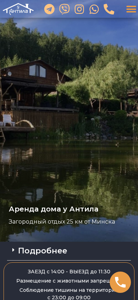 | AI-анализ | The portal uantila.by offers a countryside retreat 25 km from Minsk, with cozy cabins accommodating from 2 to 10 people for romantic getaways and family vacations. The property is situated near Dubrovsky reservoir in a birch and pine forest with a quiet pond, providing a picturesque and tranquil setting. Amenities include a sauna, hot tub, swimming pool, and jacuzzi. Recreational activities include children's playgrounds, football and volleyball courts, basketball, darts, mini golf, table tennis, trampolines, fishing, bicycles, swings, a rope swing, hammocks, fire pits, and relaxation zones. The property is intended for peaceful relaxation, not for noisy companies. Check-in is from 14:00 and check-out before 11 |