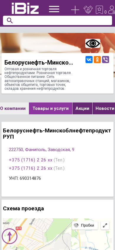 | Название / Заголовок | Белоруснефть-Минскоблнефтепродукт РУП - Оптовая и розничная торговля нефтепродуктами. Розничная торговля. Общественное питание. Сеть автозаправочных станций, магазинов, объектов общепита, торговых точек, складов хранения нефтепродуктов.. 222750, Фаниполь, , Заводская, 9 |