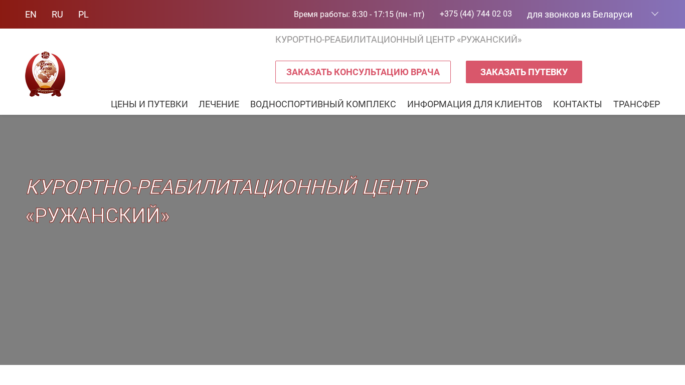 | SEO-описание | Приглашаем вас в Белорусский центр медицинской реабилитации ✅ Все виды лечения и оздоровления ➡️ В отделении мед реабилитации "Ружанский" ☎️ Звоните, мы ждем вас! |