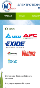 AI-анализ | This online resource, titled "Главная" and owned by the .BY domain "m-energo.by," is the homepage of a Belarusian electrical technology company named М-Энерго. The website's description is tagged with keywords related to uninterruptible power supplies (UPS), Delta, Delta SE, electronics, and backup power sources, including batteries and power sources. The top_words indicate a significant focus on backup power and batteries, with terms like "ибп" (источники бесперебойного питания) and "аккумуляторы" appearing frequently. The company offers services such as repair and maintenance of generators and power sources. The website also provides information about their catalog, DELTA B.B., which includes battery ventura, solar diode lighting, and services. The company's mission is to supply equipment |