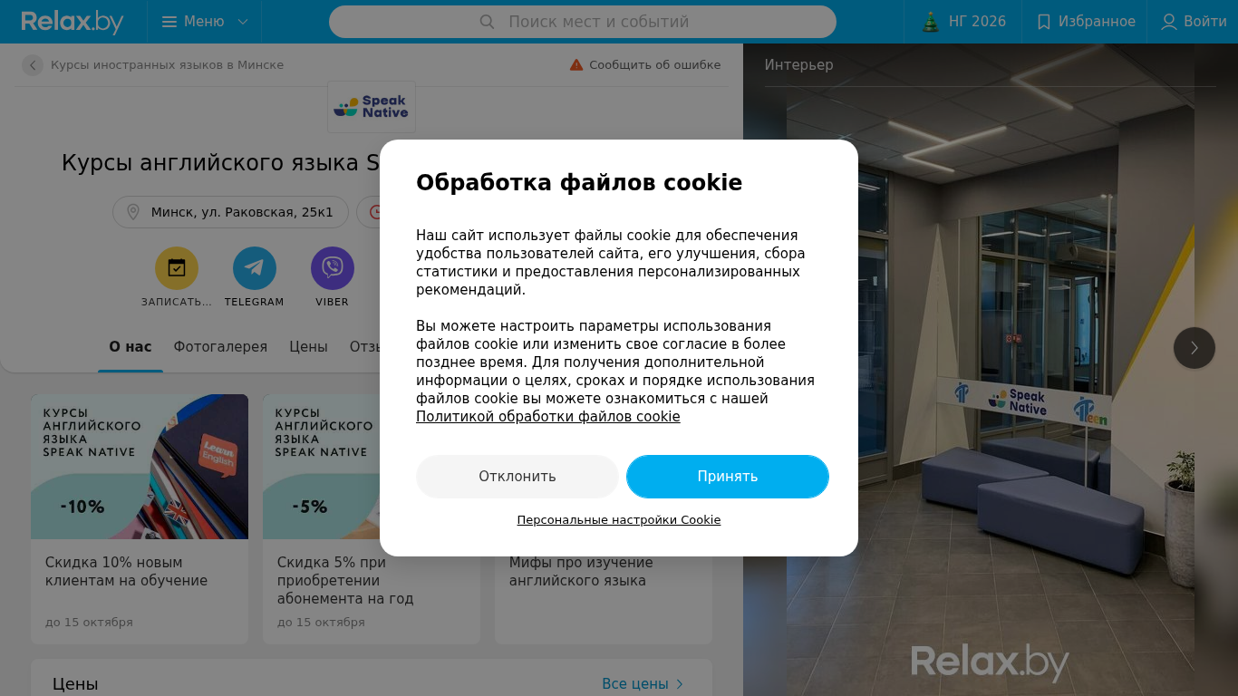 | SEO-описание | Обучение английскому языку Speak Native (Спик Нейтив) в Минске – отзывы, телефоны, график работы и карта проезда на Relax.by |