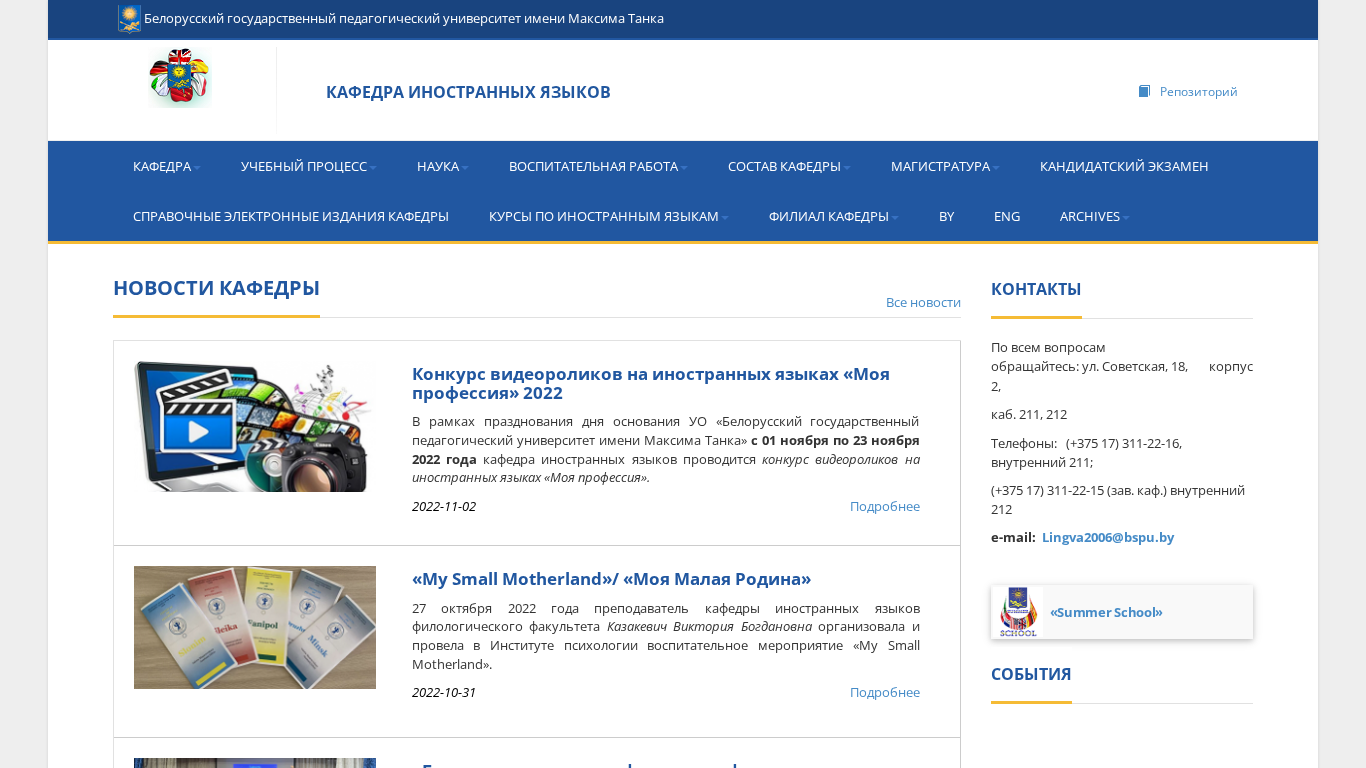 | AI-анализ | The web project "Belarusian State Pedagogical University named after Maxim Tank, Department of Foreign Languages" is the official website of the Department of Foreign Languages at the Belarusian State Pedagogical University. The site provides detailed information about the structure, academic programs, faculty, and research activities of the department. Users can find information about undergraduate and graduate programs in various foreign languages, including English, as well as information about extracurricular activities such as language courses, Olympiads, and summer schools. The site also includes resources for students, such as academic calendars, faculty schedules, and study materials. Additionally, the site features news and announcements related to the department and its activities. |