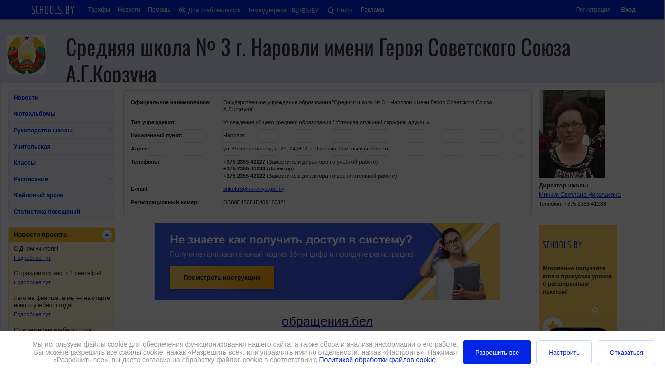 | Название / Заголовок | Средняя школа № 3 г. Наровли имени Героя Советского Союза А.Г.Корзуна |