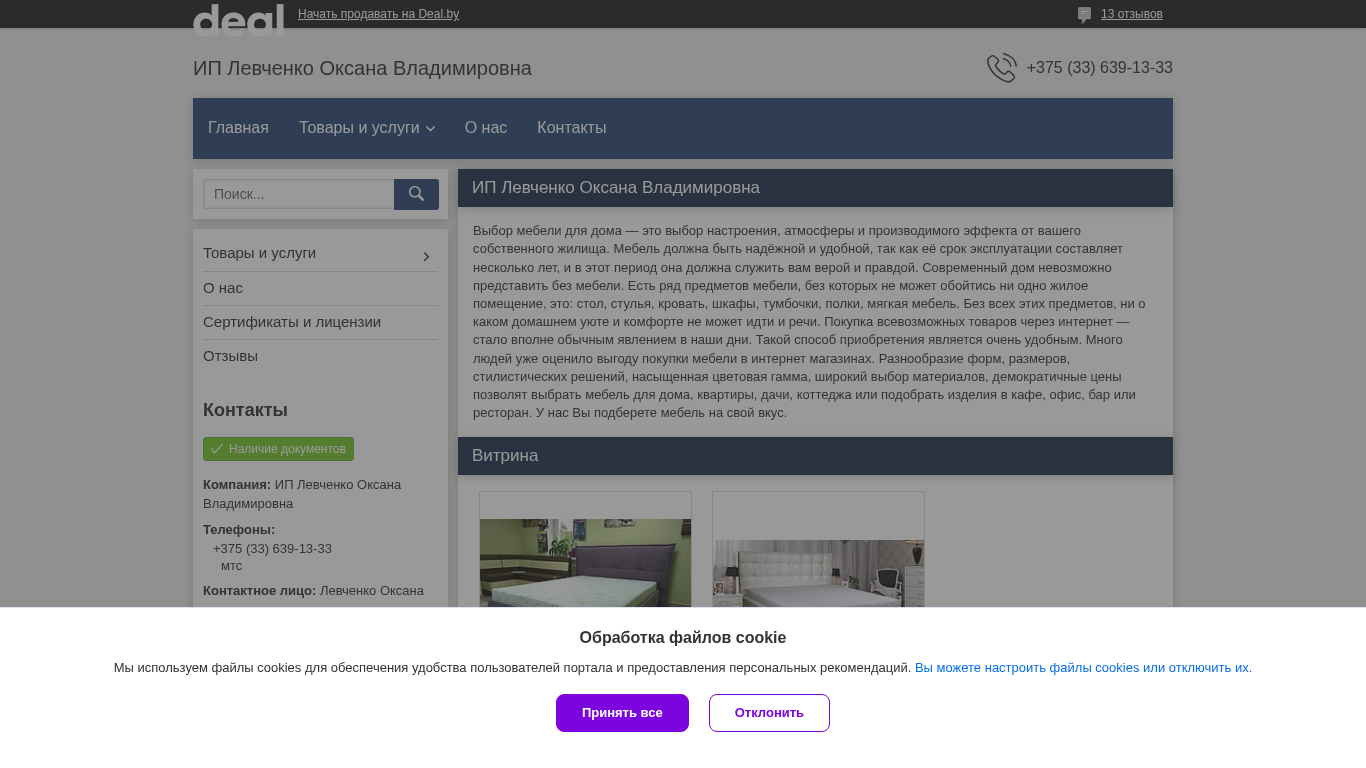 | SEO-описание | Контактная информация, товары и услуги компании "ИП Левченко Оксана Владимировна" |