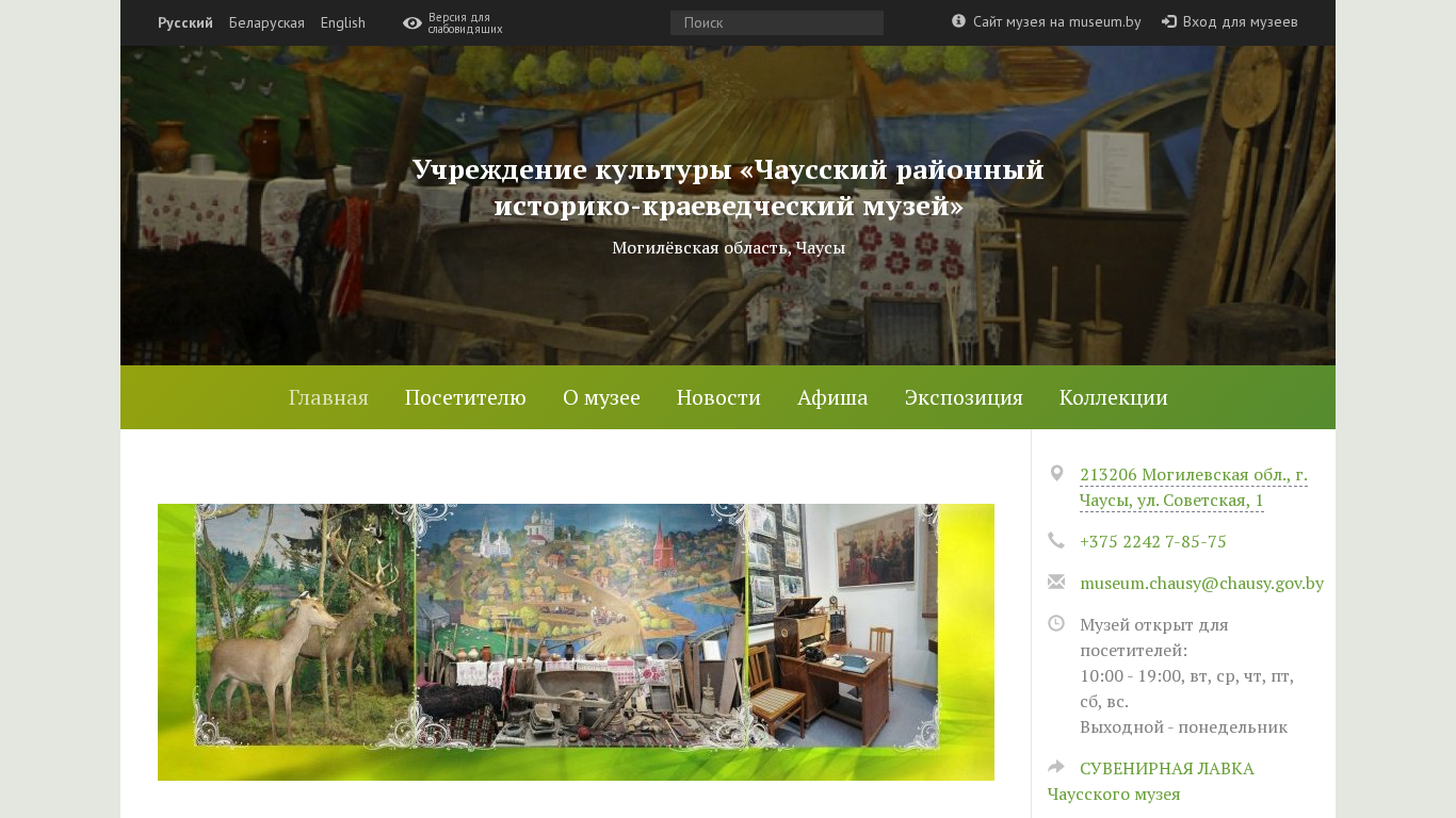 | SEO-описание | Учреждение культуры «Чаусский районный историко-краеведческий музей» — новости и афиша мероприятий, информация для посетителей, цены, экспозиция, коллекции, материалы для музейщиков. |