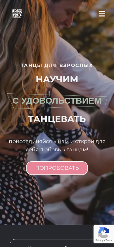 | AI-анализ | The website "КВАРТАЛ Юлии Шостак| Танцы для взрослых" (kvartalstudio.by) is a dance studio dedicated to teaching various partner dances for adults. With over 20 years of experience, the studio offers a unique and engaging atmosphere where dance becomes a part of life. The website's title translates to "Quarter of Juliya Shostak | Dances for Adults." The description indicates that the studio specializes in salsa, Argentine tango, and lindy hop in Minsk, with lessons available for beginners starting from scratch. The website focuses on solo directions. Keywords associated with the website include "dance," "studio," "adults," "lessons," and "Minsk." The website's top words are "танц" (dance), |