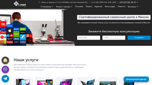 | AI-анализ | This online resource is a service center called S-mart.by, located in Minsk, Belarus. The website offers repair services for various digital technology devices, including but not limited to smartphones, tablets, laptops, televisions, robotic vacuums, Samsung and Apple products, and various types of equipment such as projectors, monitors, GPS navigators, and audio and video devices. The repair center provides a 12-month guarantee for its services. The website also mentions certifications, partnerships, and contact information for inquiries and appointments. The repair services cater to a wide range of devices and malfunctions. The website also mentions the availability of accessories, news, and the option to call for a courier or send items by post. The center is a certified service provider in Minsk, offering a full spectrum of repair and maintenance services for technology devices. |