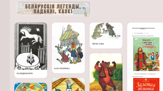 | AI-анализ | This website is about Belarusian legends, folktales, and fairy tales. The title is 'БЕЛАРУСКІЯ ЛЕГЕНДЫ, ПАДАННІ, КАЗКІ' (Belarusian Legends, Folktales, Fairy Tales). The description includes words related to folktales, such as 'залаты' (legends), 'казк' (fairy tales), and 'паданні' (folktales). The most frequent words are 'залаты' (legends), 'беларуск' (Belarusian), and 'казк' (fairy tales), with each occurring five times. Other common words include 'кажушку' (hut), 'бай' (tale), 'баран' (ram), 'бок' |