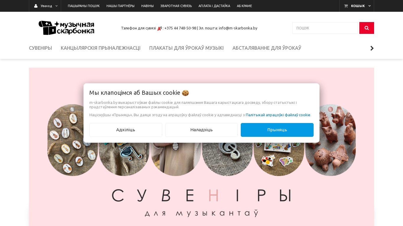 | SEO-описание | Тавары для музыкантаў і выкладчыкаў самавывазам і з дастаўкай па Беларусі. Трэнажоры, падарункі, сувеніры, плакаты, музычныя інструменты. |