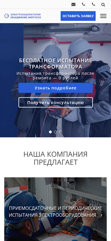 | AI-анализ | The website is a business platform for Electro Laboratory "Obshchestvo with Additional Liability" Ob'edinenie Energosouz. It offers acceptance and periodic testing and measurements, as well as the setup of RZiA for electrical networks, transformer substations, distribution devices, and industrial equipment. The website includes information about services, such as testing and measuring electrical installations in buildings, testing and setting up transformer substations, and testing and setting up relay protection for electrical equipment. The company also offers testing for power transformers and generators, as well as testing for cable lines. The website provides pricing information, customer testimonials, and contact details for requesting a quote or consultation. The company has been operating for over 20 years and has tested and set up over 4406 transformers and 6723 RZiA cells. The domain is ensou |