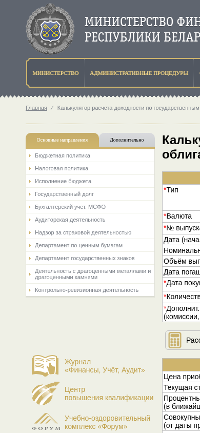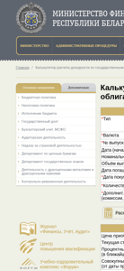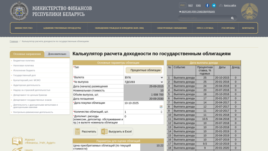 | Название / Заголовок | Калькулятор расчета доходности по государственным облигациям - Министерство финансов Республики Беларусь |