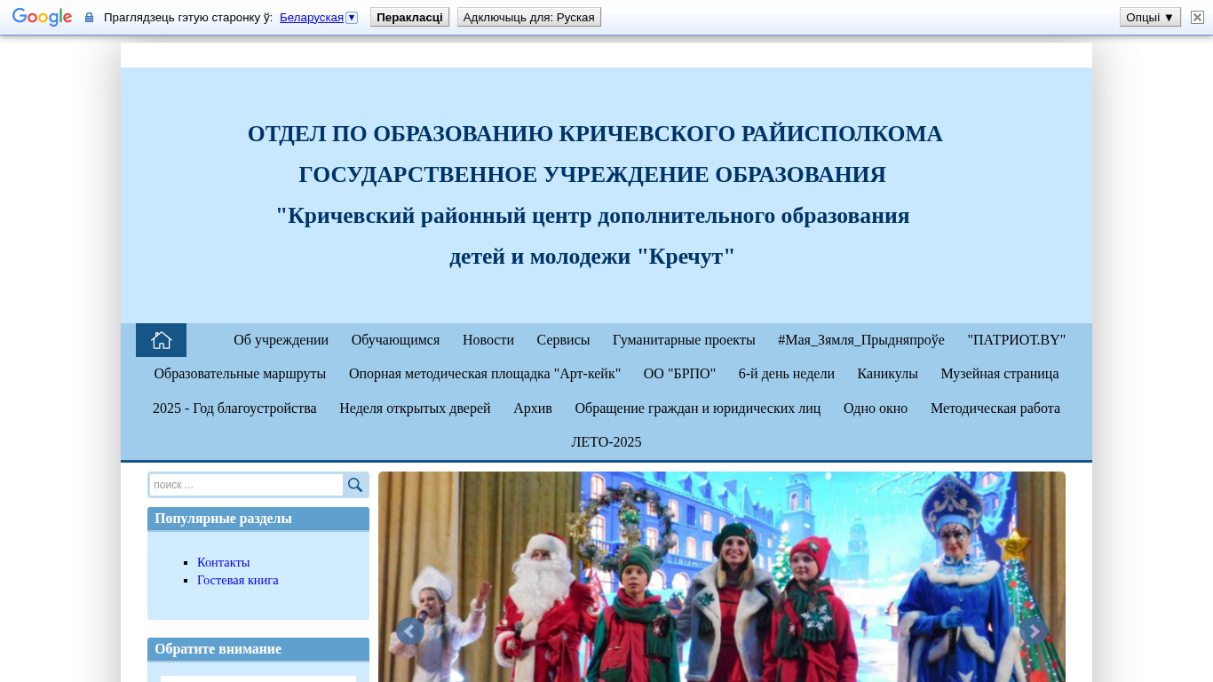 | Название / Заголовок | Центр творчества детей и молодёжи «Крэчут» г. Кричева |
