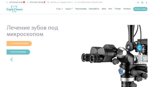 SEO-описание | ЕвроСтом - стоматология в Витебске предоставляет платные услуги стоматологии в Беларуси 🦷 Только сертифицированные медицинские работники ☎️ +375 29 814-11-88. |