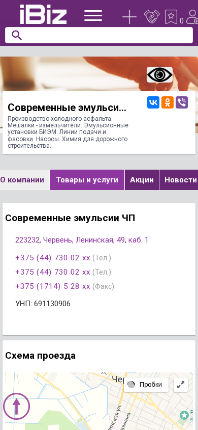 | Название / Заголовок | Современные эмульсии ЧП - Производство холодного асфальта. Мешалки - измельчители. Эмульсионные установки БИЭМ. Линии подачи и фасовки. Насосы. Химия для дорожного строительства.. 223232, Червень, , Ленинская, 49, каб. 1 |