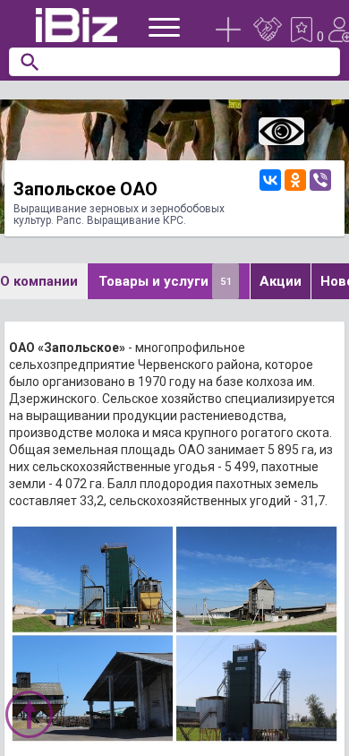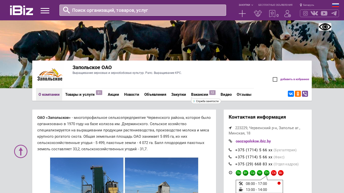 | Название / Заголовок | Запольское ОАО - Выращивание зерновых и зернобобовых культур. Рапс. Выращивание КРС.. 223229, , Заполье аг., Минская, 18 |