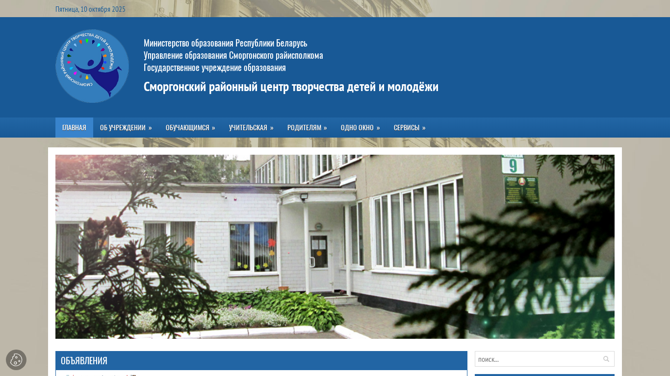 | Название / Заголовок | Сморгонский районный центр творчества детей и молодёжи |