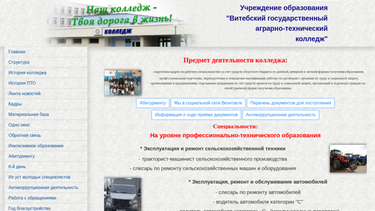 | Название / Заголовок | Витебский государственный аграрно-технический колледж - Официальный сайт |