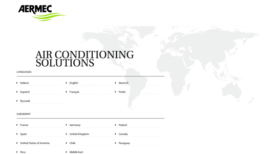 | AI-анализ | This website, titled "International - Aermec S.p.A. - Air conditioning solutions," is a language-supported platform dedicated to providing air conditioning solutions. The website offers information in multiple languages including Italian, English, Deutsch, Español, Français, Polski, Русский, and others. Aermec S.p.A., located in Italy with the registration number 00234050235 and Via Roma, 996 address in Bevilacqua, is the subsidiary behind the website. The company also has subsidiaries in France, Germany, Poland, Spain, United Kingdom, Canada, United States of America, Chile, Paraguay, Peru, and Middle East. The website provides details about Aermec S.p.A.'s Italian registration (Registro Imprese Verona), AEE registration (IT |