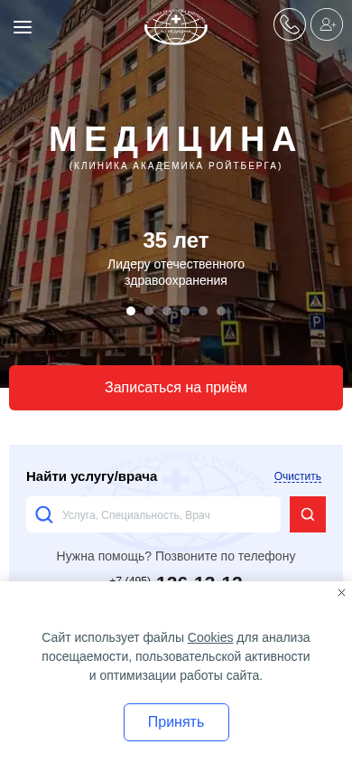 | SEO-описание | ⚕️ Современный многопрофильный семейный медицинский центр академика Ройтберга предоставляет полный спектр медицинской помощи. 🏥 Дисконтные программы для пациентов! Многопрофильная платная семейная клиника АО Медицина. 💉 Диагностика и круглосуточная скорая медицинская помощь. Стационарное отделение. Частная клиника. ☎️: +7(495)172-15-92 |
