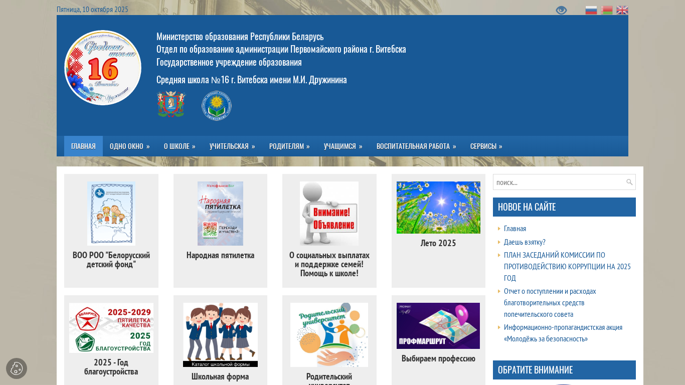 | Название / Заголовок | Средняя школа №16 г. Витебска имени М.И.Дружинина |