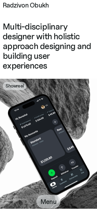 | Название / Заголовок | Radzivon Obukh · UX/UI Designer With Product Approach |