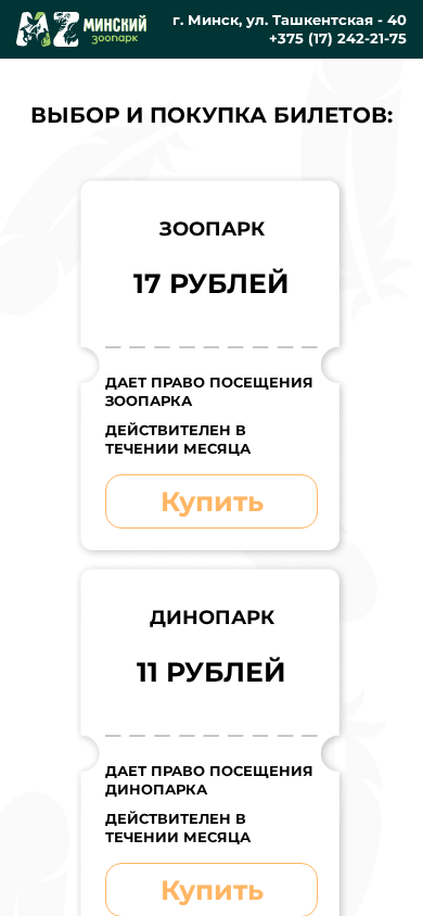 Покупка билетов Онлайн в Минский Зоопарк| УНП | 190321121 |