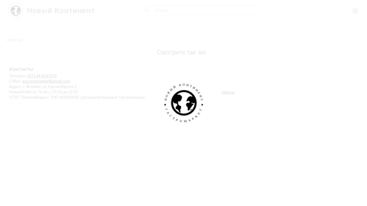 | AI-анализ | This online resource represents the "New Continent - GastraMarket" located in the city of Жлобин, Belarus. The main title of the website is "New Continent" and it is further described as a "GastraMarket". The contact information provided includes a telephone number, "+375 44 5641010", and an email address, "econommarket@gmail.com". The physical address is given as "г. Жлобин, ул. Карла Маркса 2". The operating hours are listed as "Пн-Вс с 10:00 до 22:30". The business is named "ЧТУП "ЭкономМаркет"" and its Unified State Register number is "490420982". The domain was registered in the commercial registry |