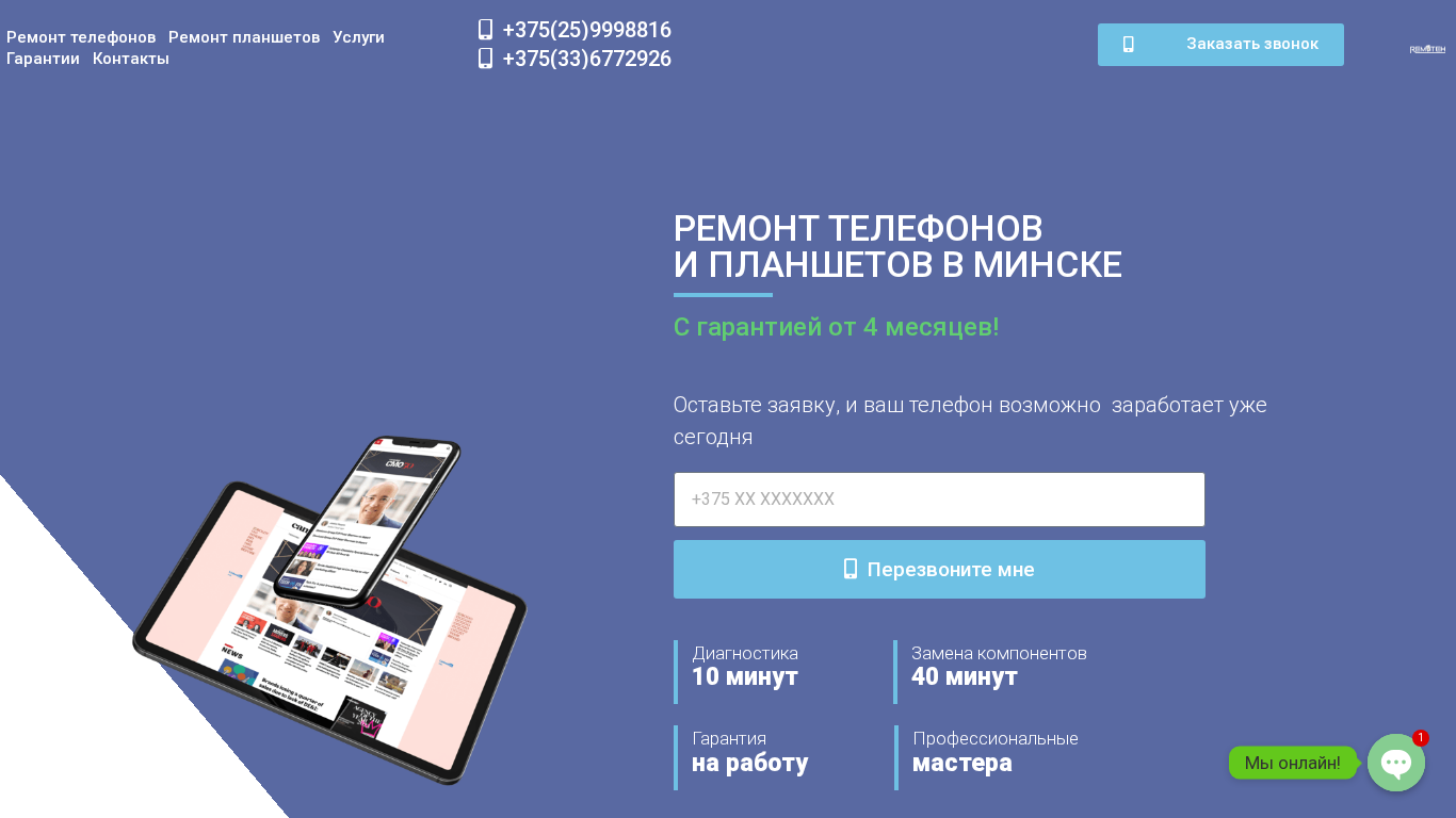 | SEO-описание | Ремонт телефонов и планшетов в Минске, пр-т Рокоссовского 17/1, ул. Якуба Коласа 40. Срочный ремонт, НИЗКИЕ ЦЕНЫ |