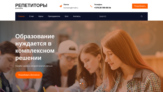| AI-анализ | The web project "Online Repetitors in Minsk | Preparation for CT/CE, School | Online Repetitors" provides online education for students in Minsk, Belarus, preparing them for CT/CE (Centralized Testing/Centralized Examination) and other exams in subjects like mathematics, Russian, physics, and others. The project offers an individual approach and guarantees results, inviting students to try a free trial lesson. The website focuses on comprehensive education solutions and provides access to experienced teachers. Students can receive detailed feedback after each lesson, and the website offers special courses in mathematical statistics and probability theory for programmers, as well as additional learning materials and a flexible schedule. The project's advantages include helping students master theories, develop problem-solving skills, deepen school knowledge, and improve grades. The website also offers support and regular feedback, interactive lessons using modern technology |