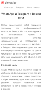 | SEO-лексика | olchat whatsapp telegram интеграции автоматизации клиентов решения бизнеса продаж клиентами новые технологии предлагаем иные каналы crm профессиональной общения позволяют инновационные |