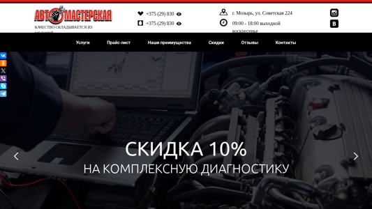 | Название / Заголовок | Автосервис (СТО) "Автомастерская" в Мозыре! Ремонт и диагностика автомобилей. Качество складывается из мелочей. |