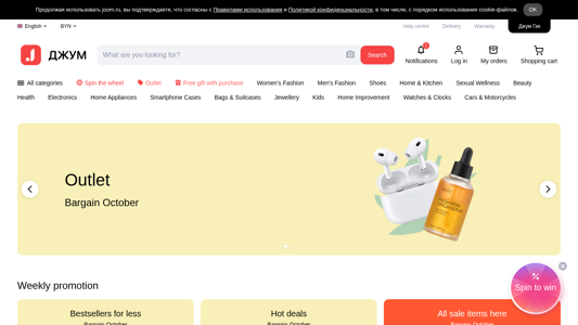 AI-анализ | language: ru The portal joom.ru, titled "Джум. Shop every day, or whenever you feel like it," offers a wide range of products at low prices, with free shipping. The website is available in English and Russian, and includes categories such as Women's Fashion, Men's Fashion, Shoes, Home & Kitchen, Beauty, Health, Electronics, and more. Visitors can browse through various sales, including the "Bargain October" promotion and the "Summer Sale," as well as deals on specific products and brands. The site also features a search function, a shopping cart, and a notification system for new deals. |