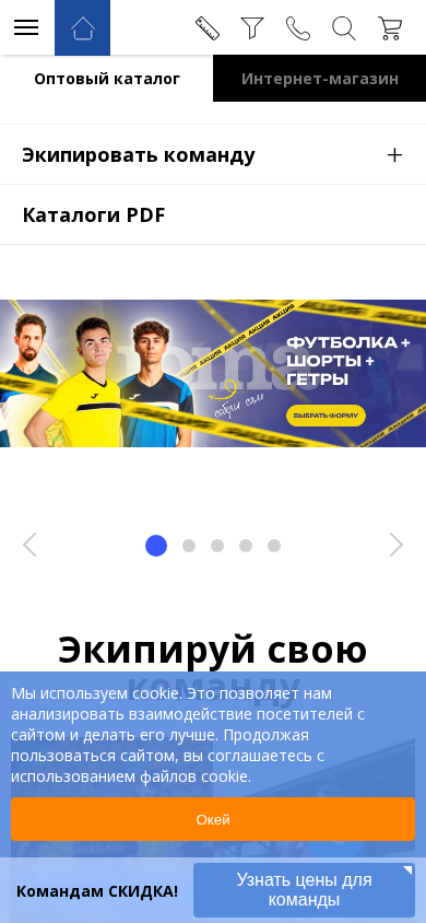 | AI-анализ | This website is an online sports equipment store specializing in Joma brand products. It offers professional sports equipment and team uniforms for purchase on demand. The website provides an opt-in catalog for bulk purchases and a retail online store for individual customers. The store carries a wide range of items including team uniforms, shirts, shorts, pants, shoes, goalkeeper equipment, and various accessories. The website is available in multiple Russian cities and offers delivery and payment options. The store also features a section for discounted polyester products and a constructor for custom team uniform design. The website uses cookies for site analysis and has contact information and a reverse call-back feature. The store's top keywords include 'sports equipment', 'team uniforms', 'Joma brand', 'bulk purchases', and 'discounts'. |