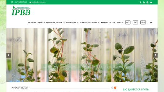 | AI-анализ | --- The portal ipbb.kz, also known as "Осёмдиктер биологиясы және биотехнологиясы институты," is a scientific institution focused on biology and biotechnology. The website offers a range of services including genetics and selection, cellular engineering, hermoplasmic cryostorage, molecular biology, molecular genetics, physiology and biochemistry, commercialization, and new developments. The institution has received grants from the QR BzhCM fund and collaborates with various domestic and international organizations. Key areas of research include genetics and selection, cellular engineering, and molecular biology. Notable events include delegations from China and the Third International Symposium on Biology and Biotechnology of Central Asian Countries in 2025. |