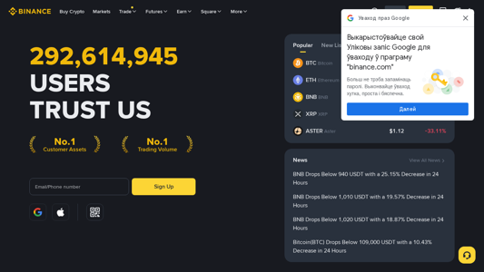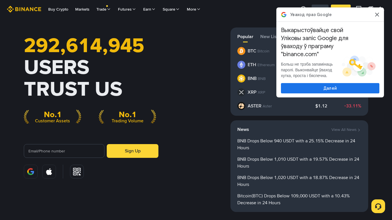 | SEO-описание | Binance, the largest crypto exchange by trading volume, serves 250M+ users in 180+ countries. With 350+ listed altcoins, it is the world's leading crypto exchange. |