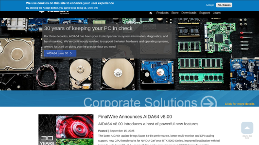 | AI-анализ | This website, titled "AIDA64," is an industry-leading software solution for system information, diagnostics, and benchmarking. It offers advanced hardware monitoring and detailed system reports. The software has been in existence for 30 years and has continuously evolved to support the latest hardware and operating systems. AIDA64 provides precise data on various aspects of a system, from early processors and memory modules to today's cutting-edge components. It has been a constant presence in the ever-changing world of computing, supporting every major technological leap and providing reliable network and system information for both individual PCs and entire enterprise networks. The latest update, AIDA64 v8.00, introduces faster 64-bit performance, better multi-monitor and DPI scaling support, new GPU benchmarks for NVIDIA GeForce RTX 5000 Series, improved localization with full Un |