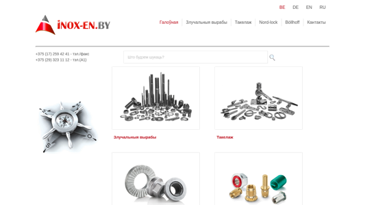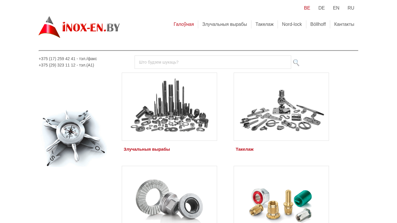 SEO-описание | Inox - en.by: прапануем крапеж і такелаж з нержавейнай сталі, а менавіта шрубы, шайбы, гайкі, ніты, антывандальны крапеж, кольцы, коркі, ручкі, карабіны, тальрэпы, коўшы, троса, вяртлюкі, ланцугі, шпількі, шайбы, заклёпкі, завесы. Падрабязная тэхнічная інфармацыя. Мінск (Рэспубліка Беларусь) |