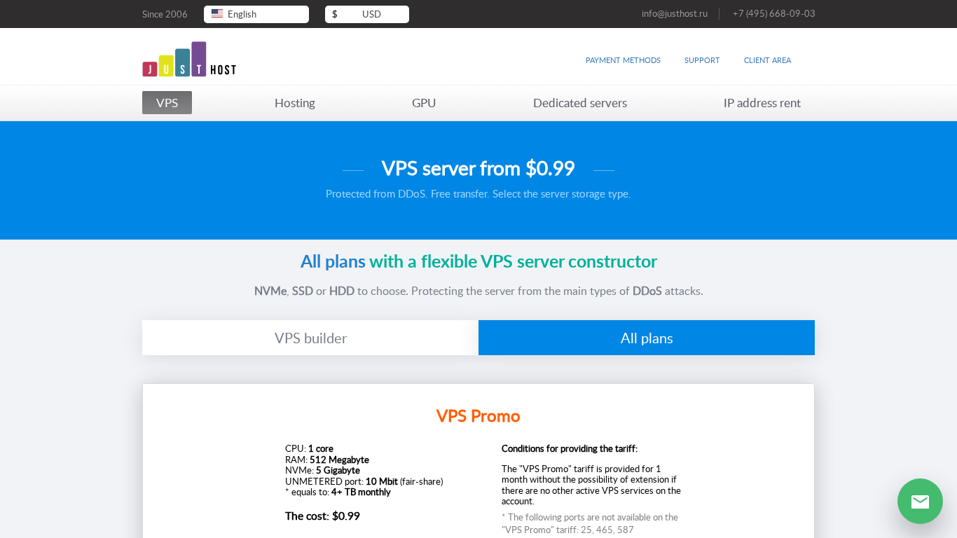 Название / Заголовок | Buy VPS server - rent a virtual server VPS/VDS at a price from $0.99 | JustHost |