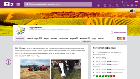 | Название / Заголовок | Мурава ОАО - Производство молока, мяса, зерна, сахарной свеклы, рапса, кормов.. 225160, , Мурава аг., Комсомольская, 1А |