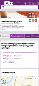 | AI-анализ | The portal is the official website of the Vitsebsk City Museum of International Soldiers, a cultural institution specializing in exhibitions, events, and documentary film screenings related to the Afghan War, as well as ethnographic activities. It provides contact information and a map for visitors, operating hours, and a section for news, announcements, and vacancies. The site also offers a way to add the organization to a personal favorite list. The domain is registered to Aybiz Media LLC, a Belarusian company specializing in business directories. |